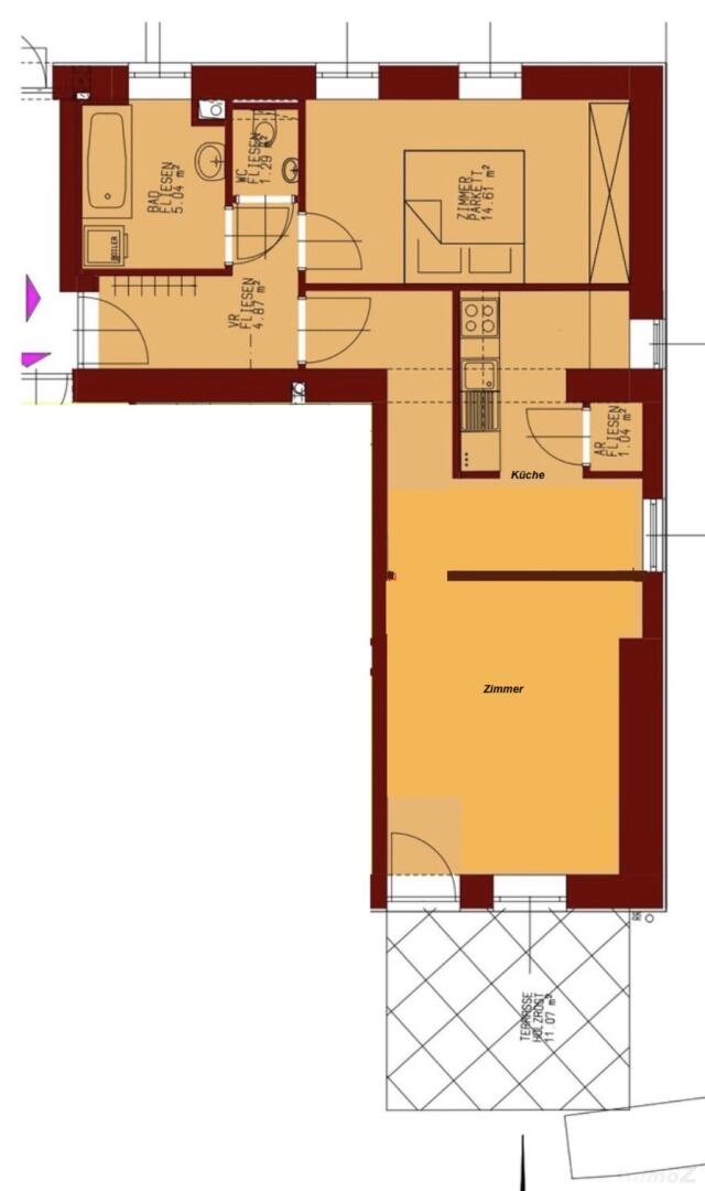 Diese 2-Zimmer Eigentumswohnung mit ca. 11,07 m2 großer Terrasse steht ab sofort zum Verkauf. 2 separate Zimmer daher ideal als 2er WG. Vorraum, Bad mit Wanne & WM-Anschluss sowie Fenster, extra WC mit Waschbecken, abgetrennte Küche mit Zugang auf ruhige Innenhof-Terrasse, Abstellraum.