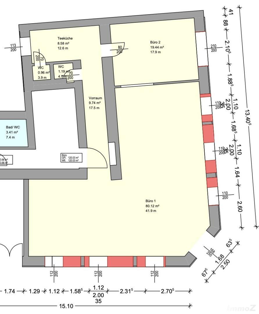 WC-Anlage sowie Sozialraum/Teeküche werden vorbereitet. Räume können noch individuell gestaltet werden vom Mieter.