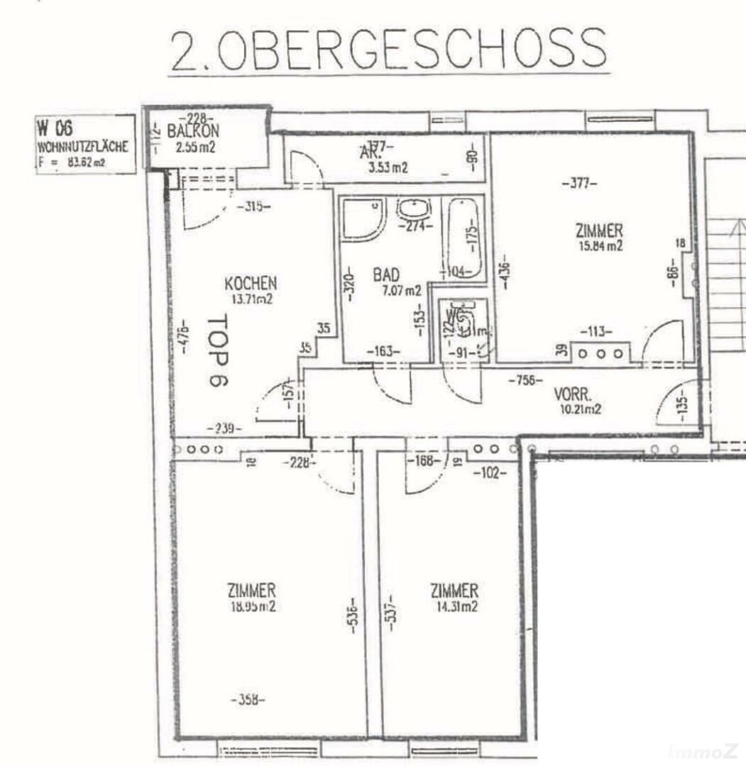 Wohnungsgrößen ca. 87,28 m2. Vorraum, extra WC, großes Bad mit Dusche und Wanne, Küche (extra Raum) mit Zugang zu Balkon und Abstellraum, 3 extra Zimmer.