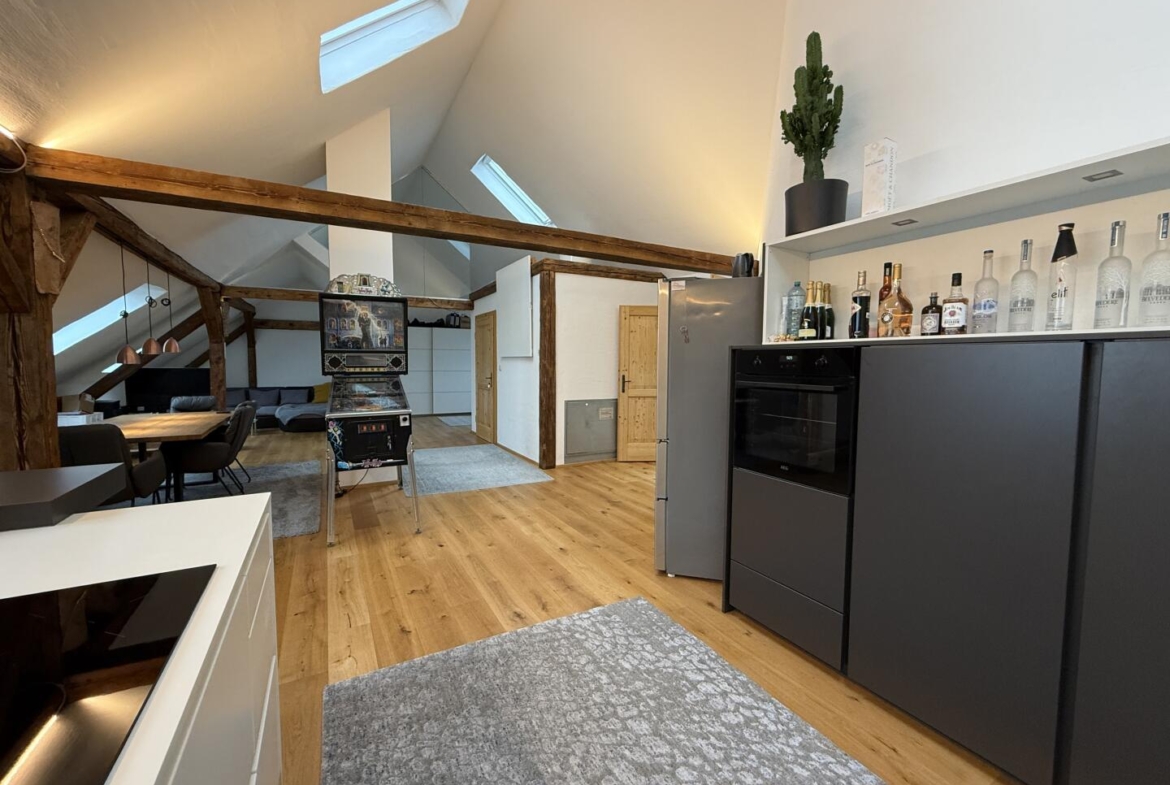 Mit Blick über ganz Graz bis hin zum Uhrturm steht hier eine hochwertige, neu sanierte Dachgeschoss-Wohnung zum Verkauf. Die hellen Räume sowie die sichtbaren Holzträger vermitteln ein wohliges Raumgefühl nicht zuletzt auch aufgrund der offenen Raumaufteilung