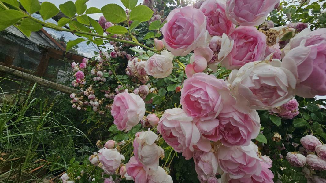 - Ein Rosengarten sowie eine Vielzahl an Pflanzen und Bäumen: Lavendel, Japankirsche, roter Ahorn, Hibiskussträucher, Kirschbaum, Apfelbaum, Weintrauben und Brombeeren.