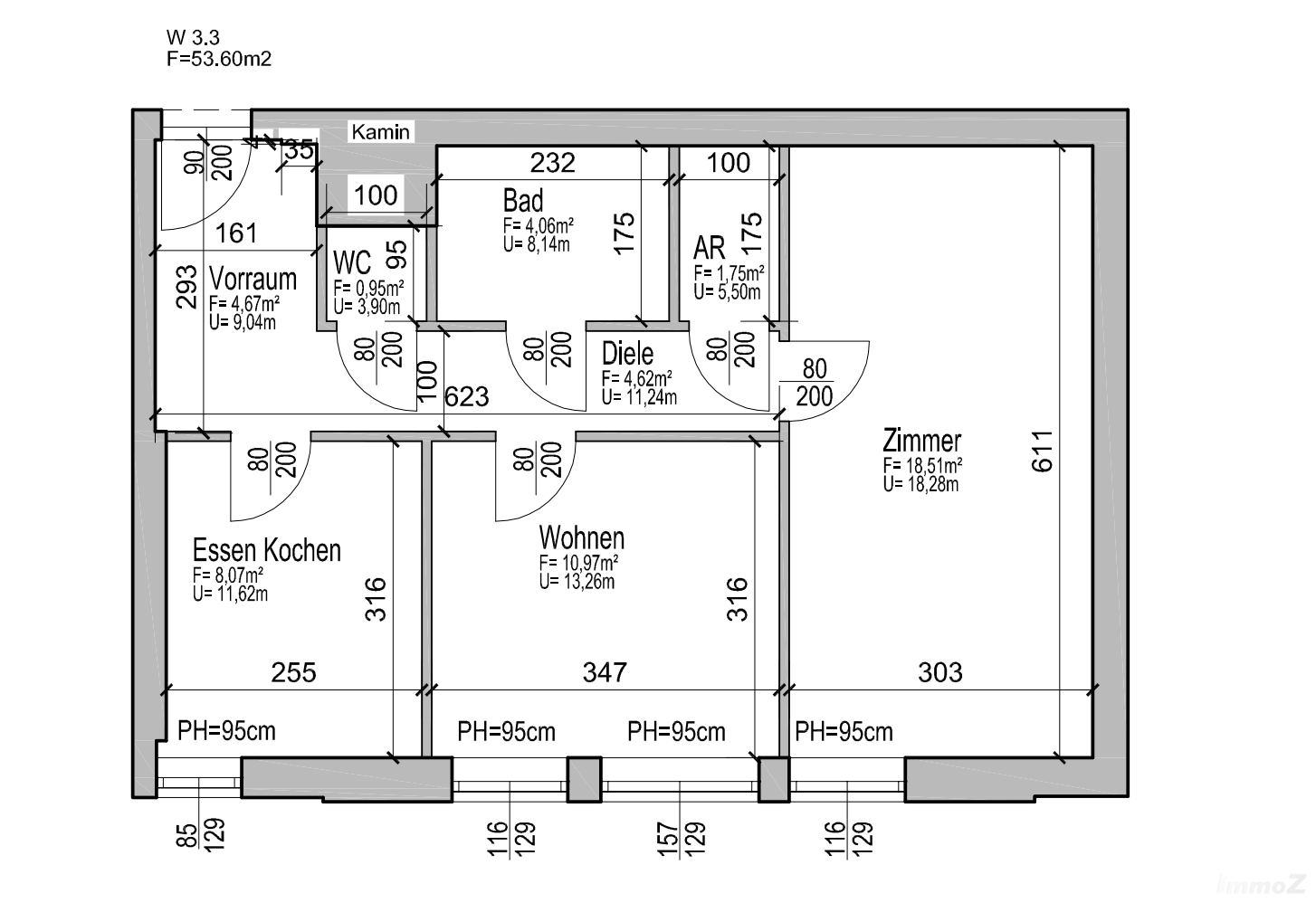 Gesamtfläche 53,6 m²